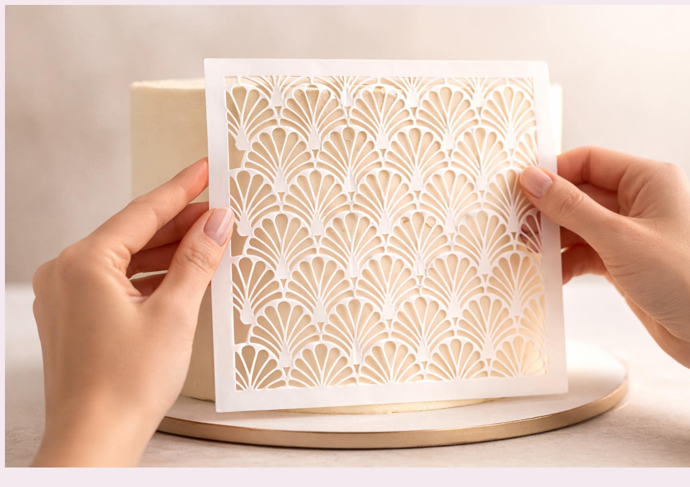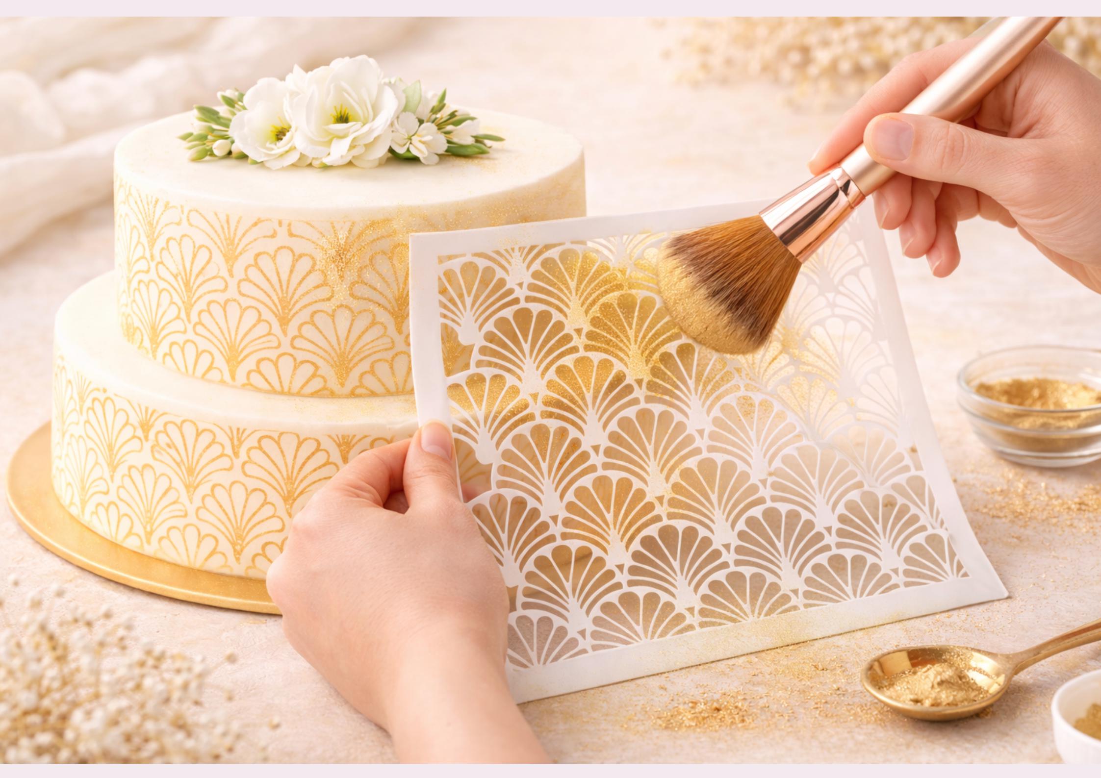 Simply place the stencil over your cake surface and apply buttercream, edible dust or airbrush colour for a crisp, consistent pattern.
