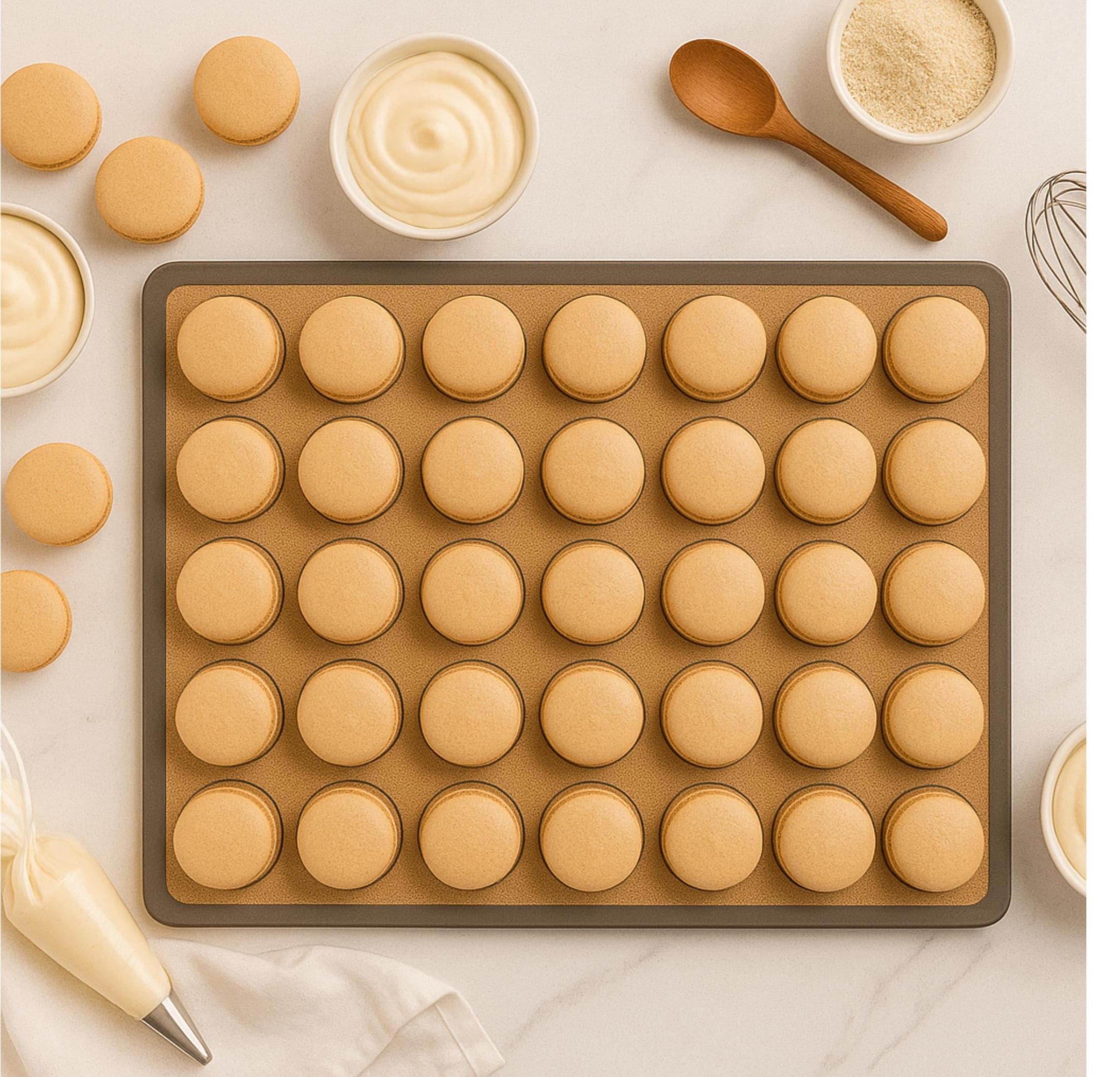 Bake like a pro with our Reusable Silicone Baking Mat for Macarons — the perfect kitchen essential for achieving flawless results every time! 🍰